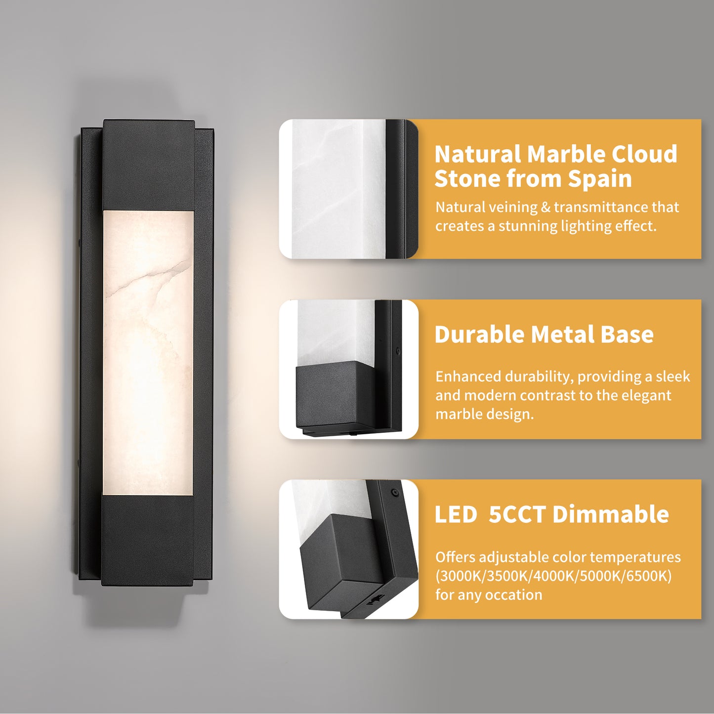 Emliviar 16 Inch Spanish Marble Cloud Stone LED Wall Sconce, Dimmable 5CCT Adjustable Matte Black Finish Vanity Light, Natural Alabaster Wall Lamp for Stairs, Foyer, Bathroom, Bedroom, Living Room, Front Door - THE298B-LED BK
