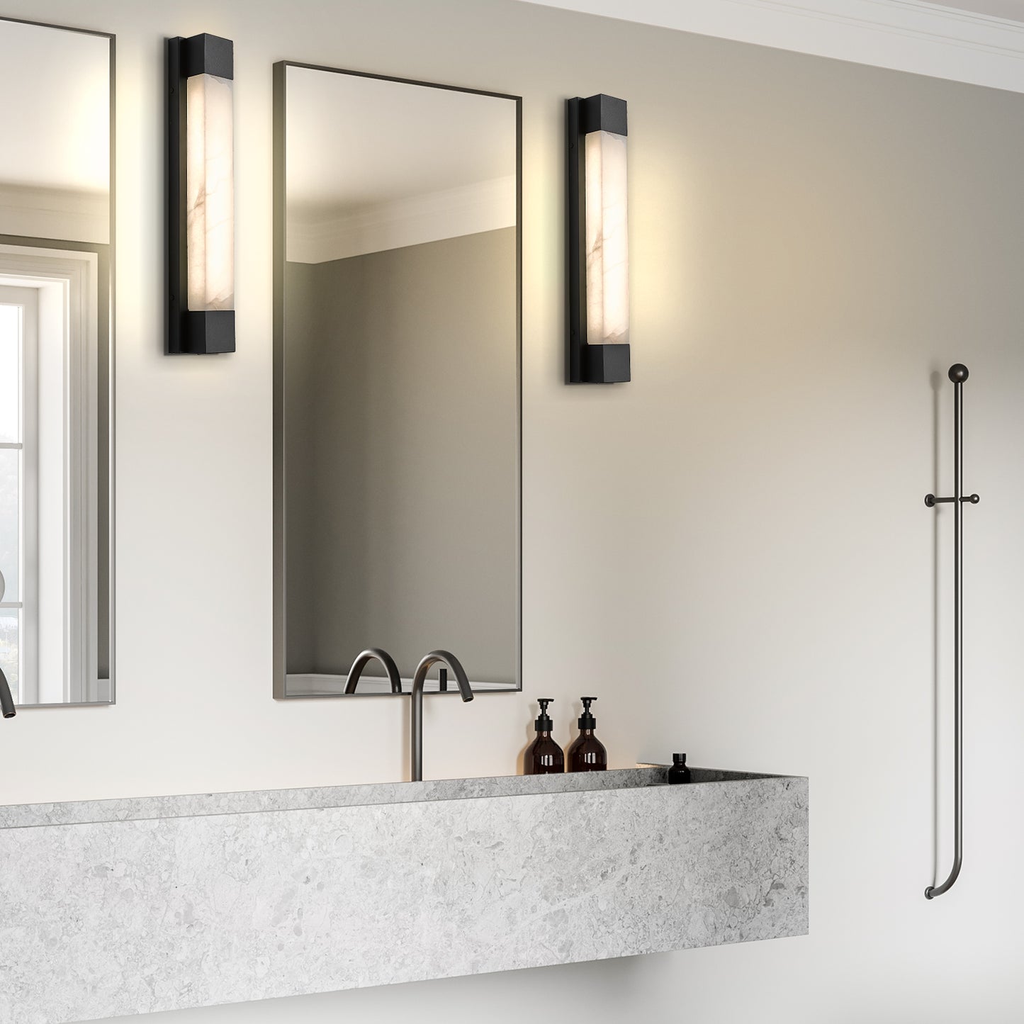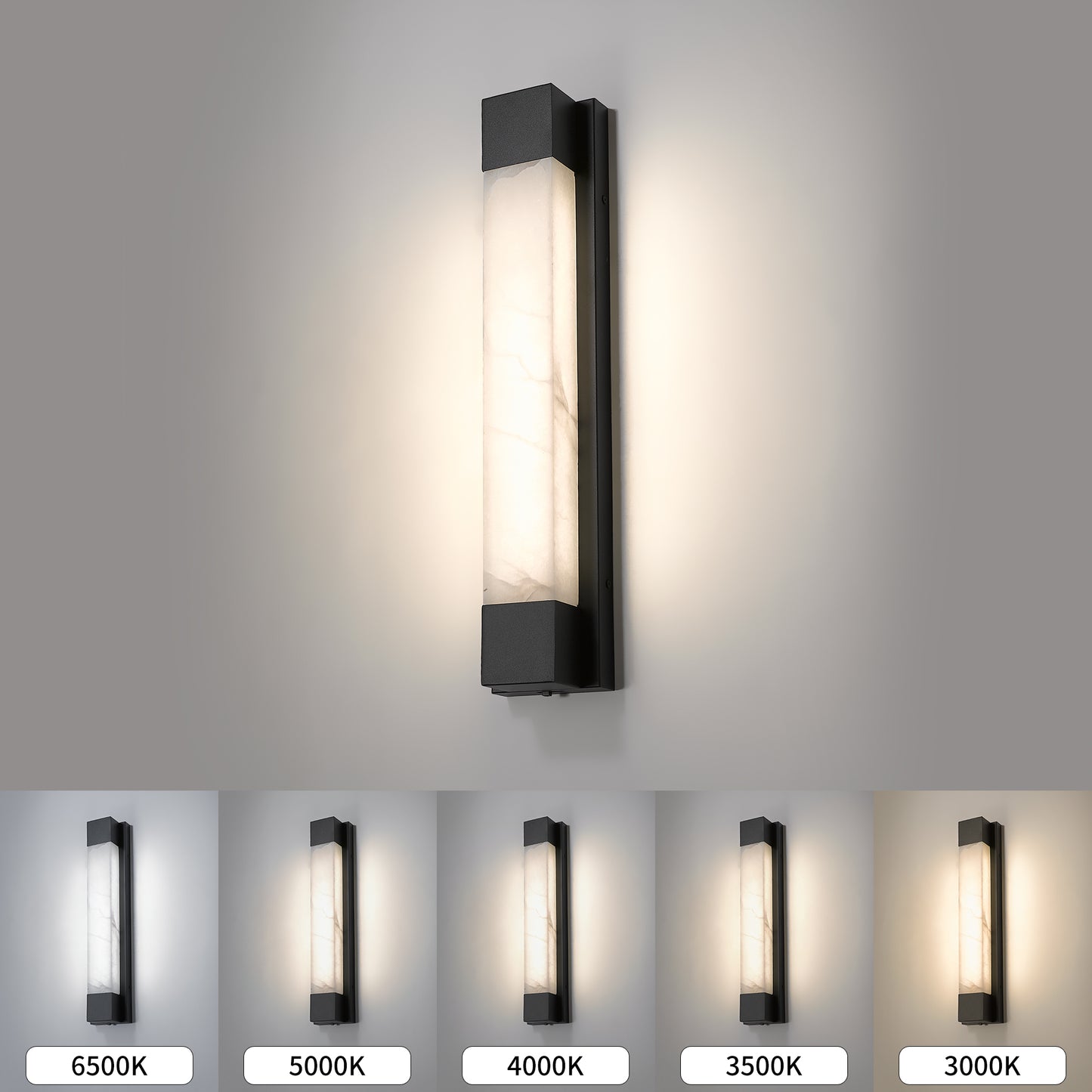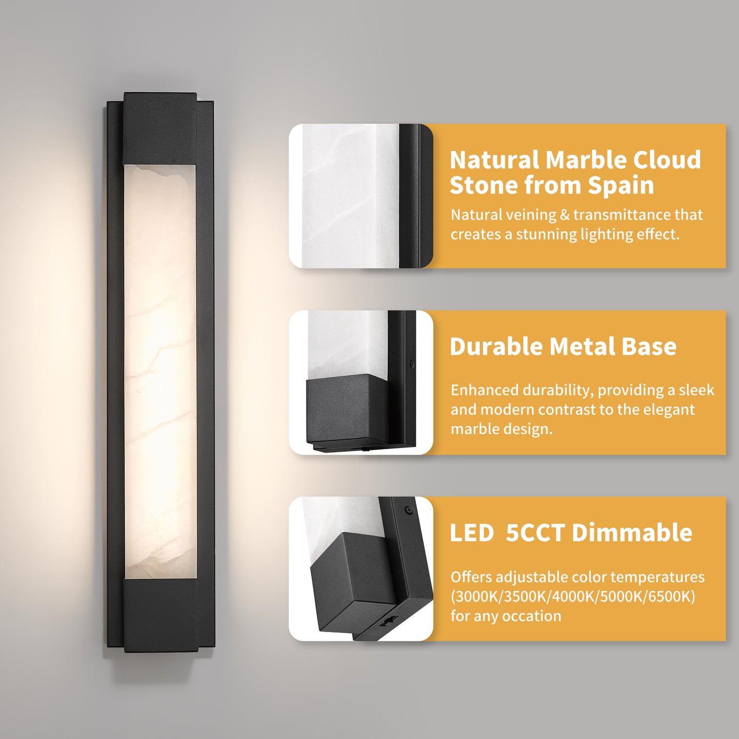 Emliviar 24 Inch Spanish Marble Cloud Stone Large LED Wall Sconce, Dimmable 5CCT Adjustable Matte Black Finish Vanity Light, Natural Alabaster Wall Lamp for Stairs, Foyer, Bathroom, Bedroom, Living Room, Front Door - THE298BM-LED BK