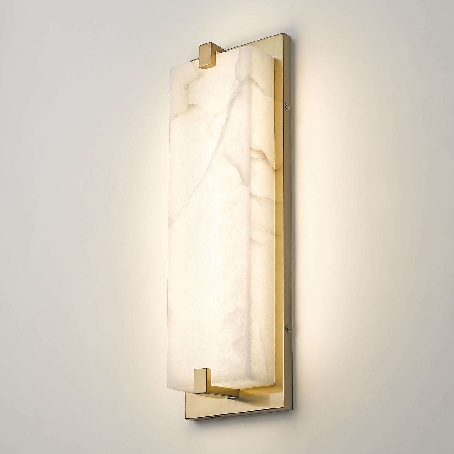 Emliviar 18.6" Spanish Marble Cloud Stone LED Large Wall Sconce, Dimmable 5CCT Brushed Gold Finish Vanity Light, Natural Alabaster Wall Lamp for Bathroom, Bedroom, Living Room, Front Door - THE297BM-LED BG
