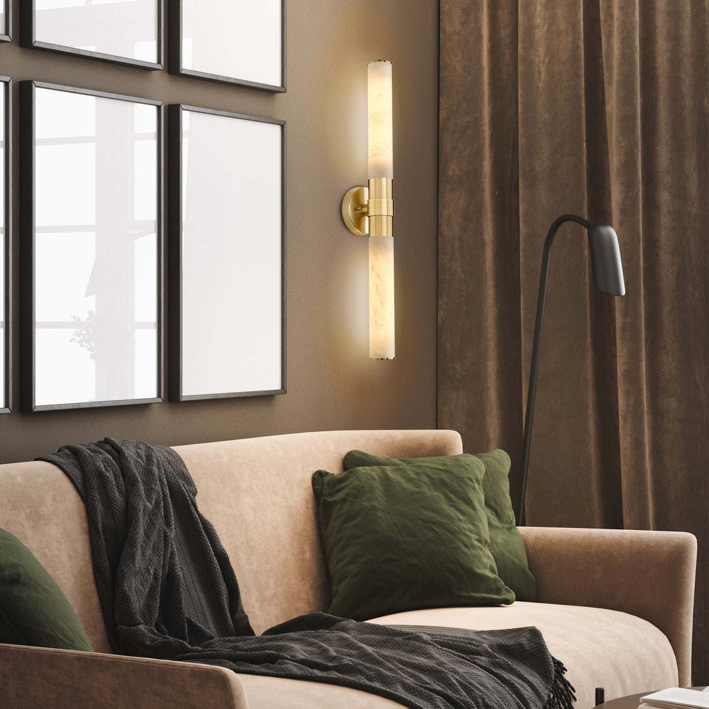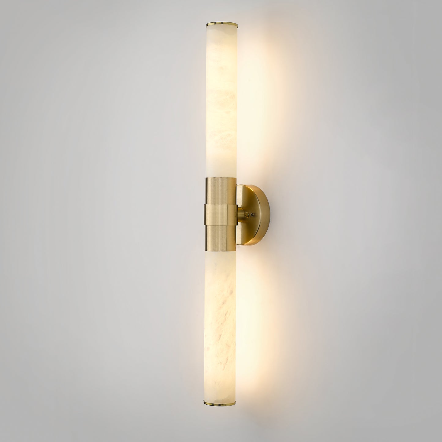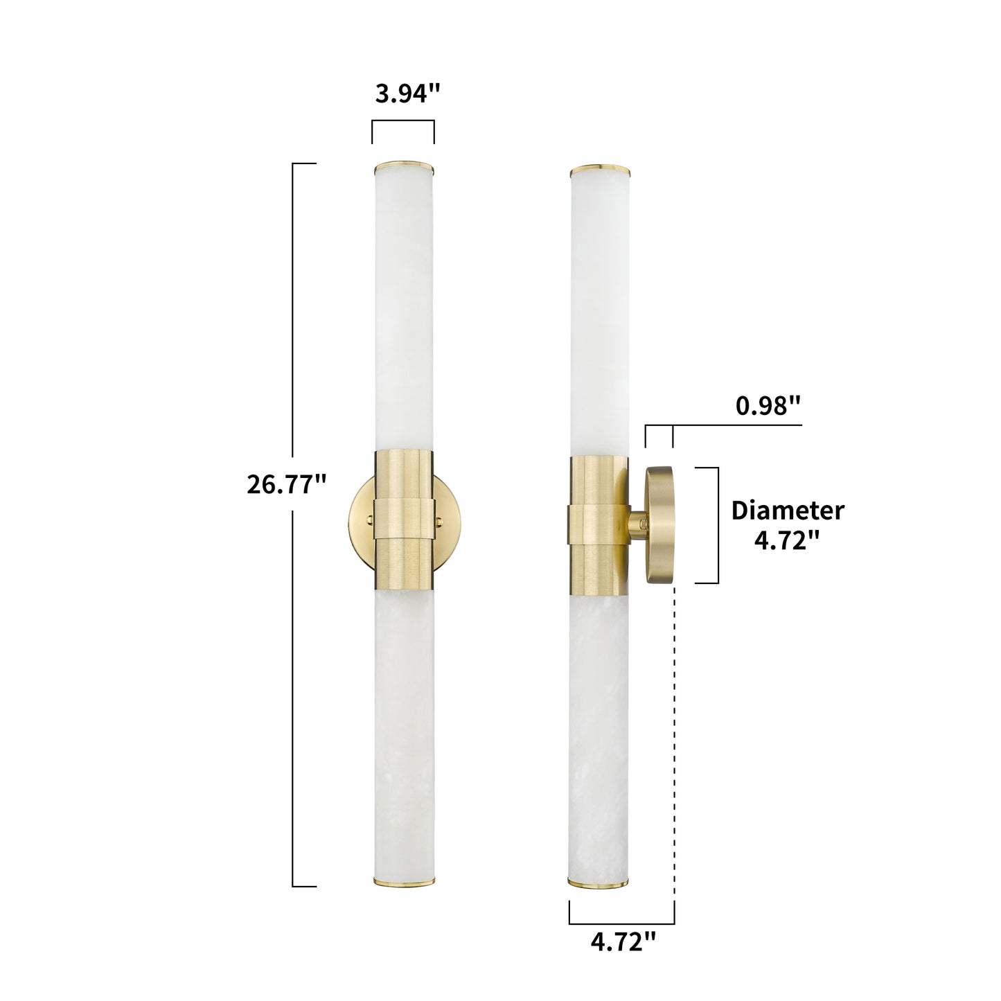 Emliviar 26 Inch Spainish Marble Alabaster Brushed Gold Finish Vanity Light, Natural Alabaster LED Long Light Tube Wall Sconce, for Bathroom, Bedroom, Living Room, Stairs, Foyer, Balcony, Hallway - GE299B BG