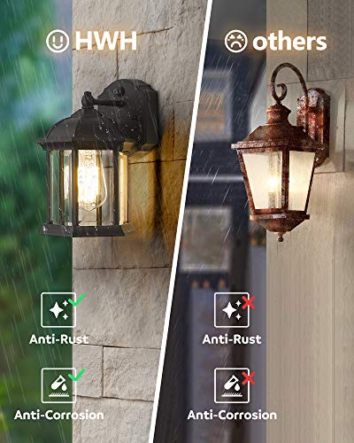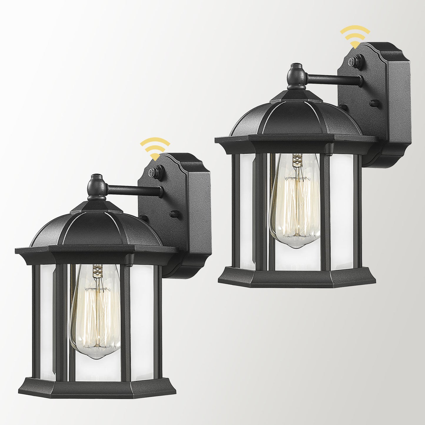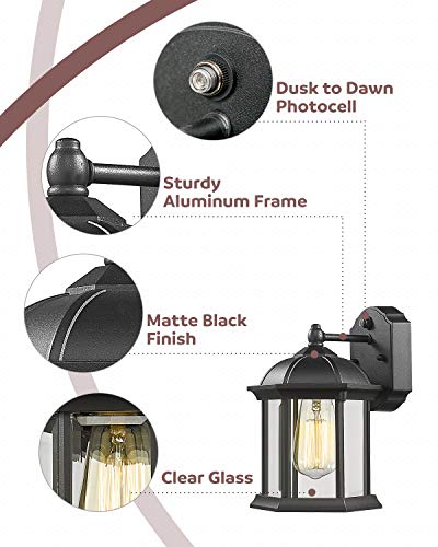 HWH 2-Pack Dusk to Dawn Sensor Outdoor Wall Lantern Exterior Wall Mount Light Fixture Matte Black, 2-Pack, 5HW35-B-PC-2PK BK