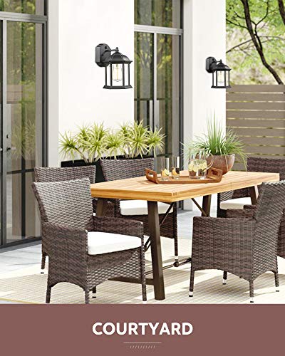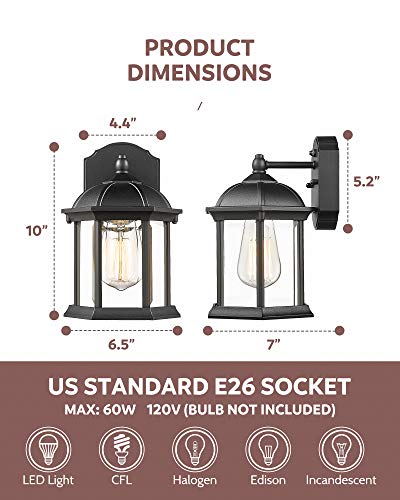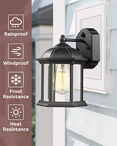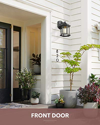 - A porch lighs features sturdy aluminum construction and clear glass in a black finish, Combining vintage and minimalist elements, also represent a gorgeous decoration with its classic design even in the daytime when the light is off. Ideal for the porch, garden, garage, entryway, balcony, doorway, hallway, pathway, street, and more application.