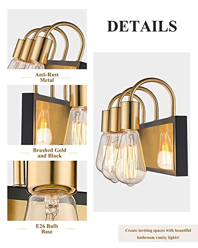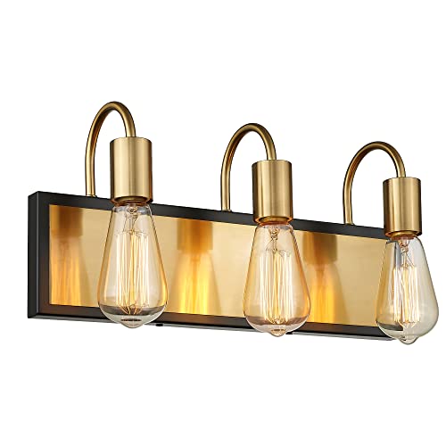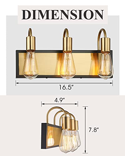 HWH 3-Light Bathroom Vanity Light Modern Vanity Light Fixture Over Mirror,Industrial Wall Sconce for Bedroom Powder Room Hallway, Brushed Gold and Black Finish, 5HLT69B-3W BG