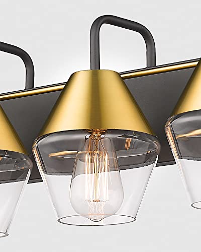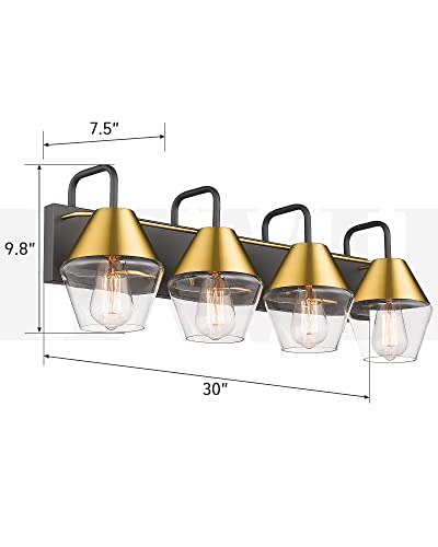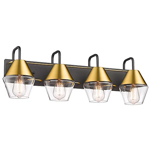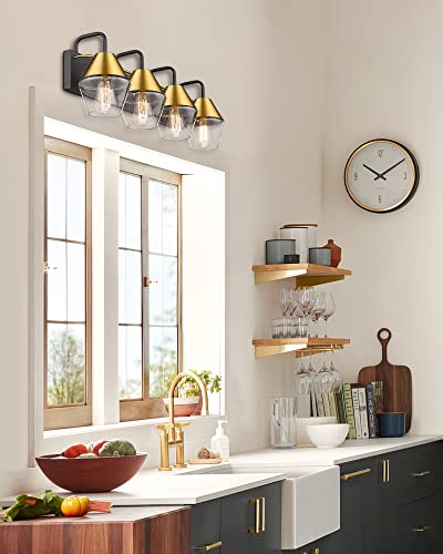 HWH Bathroom Vanity Light Fixtures Over Mirror, Vanity Wall Sconce Lamp, Black and Gold Finish, 5HZG60B-4W BK+BG
