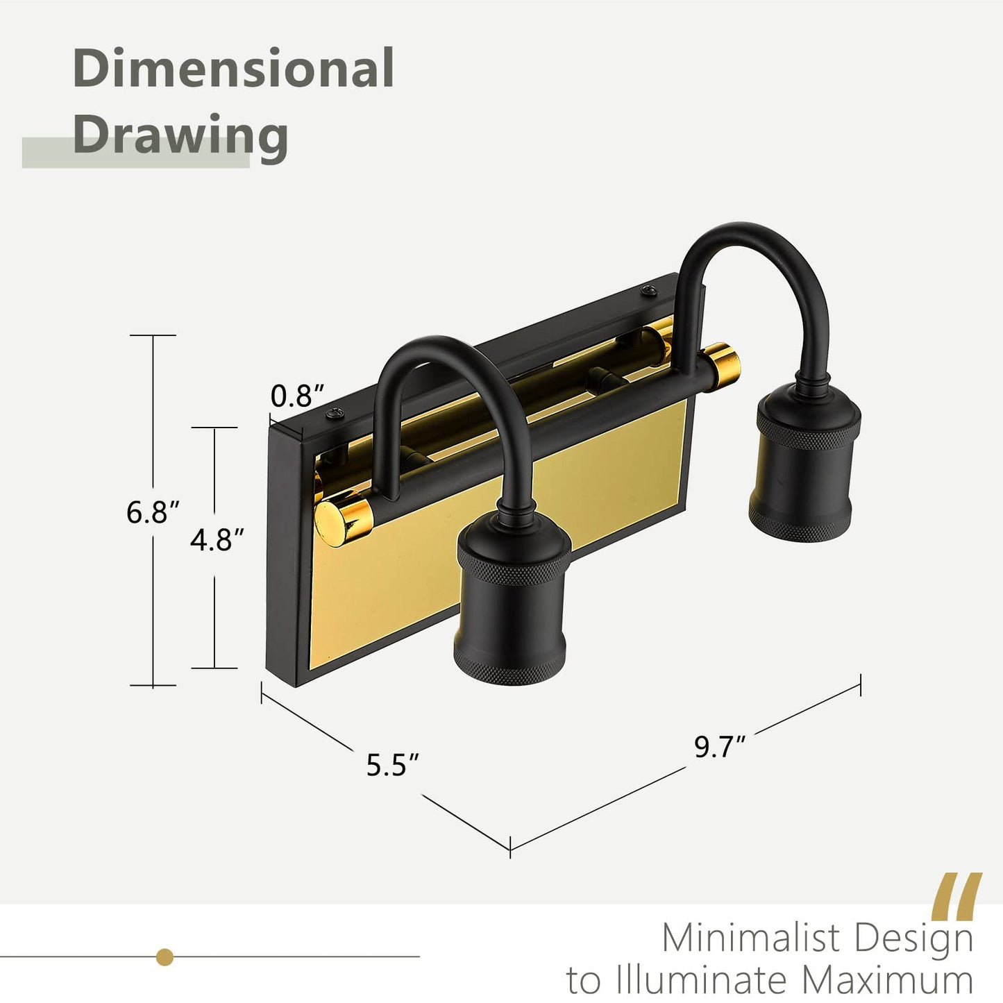 Regular price $19.99 USD- This farmhouse bathroom wall light fixture is made of sturdy metal construction in a black and gold finish. The stainless steel reflective plate with a mirror effect also gives a unique lighting effect to your house.