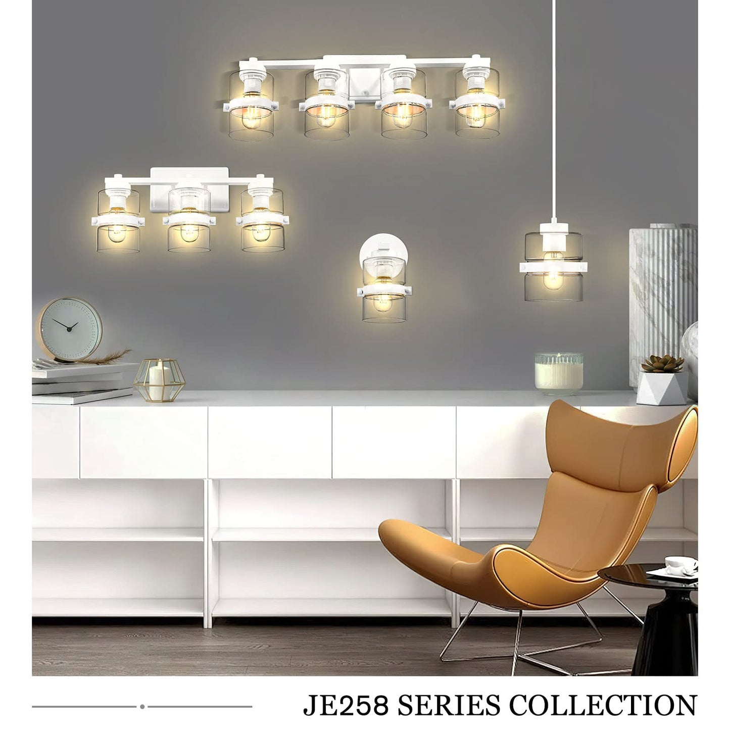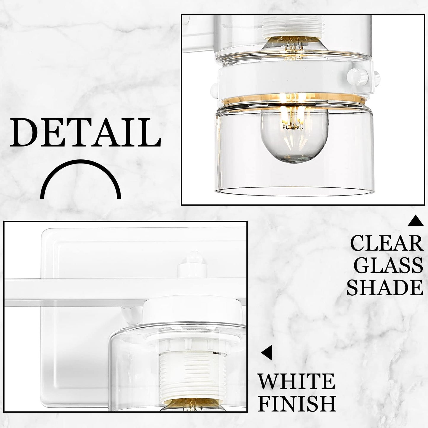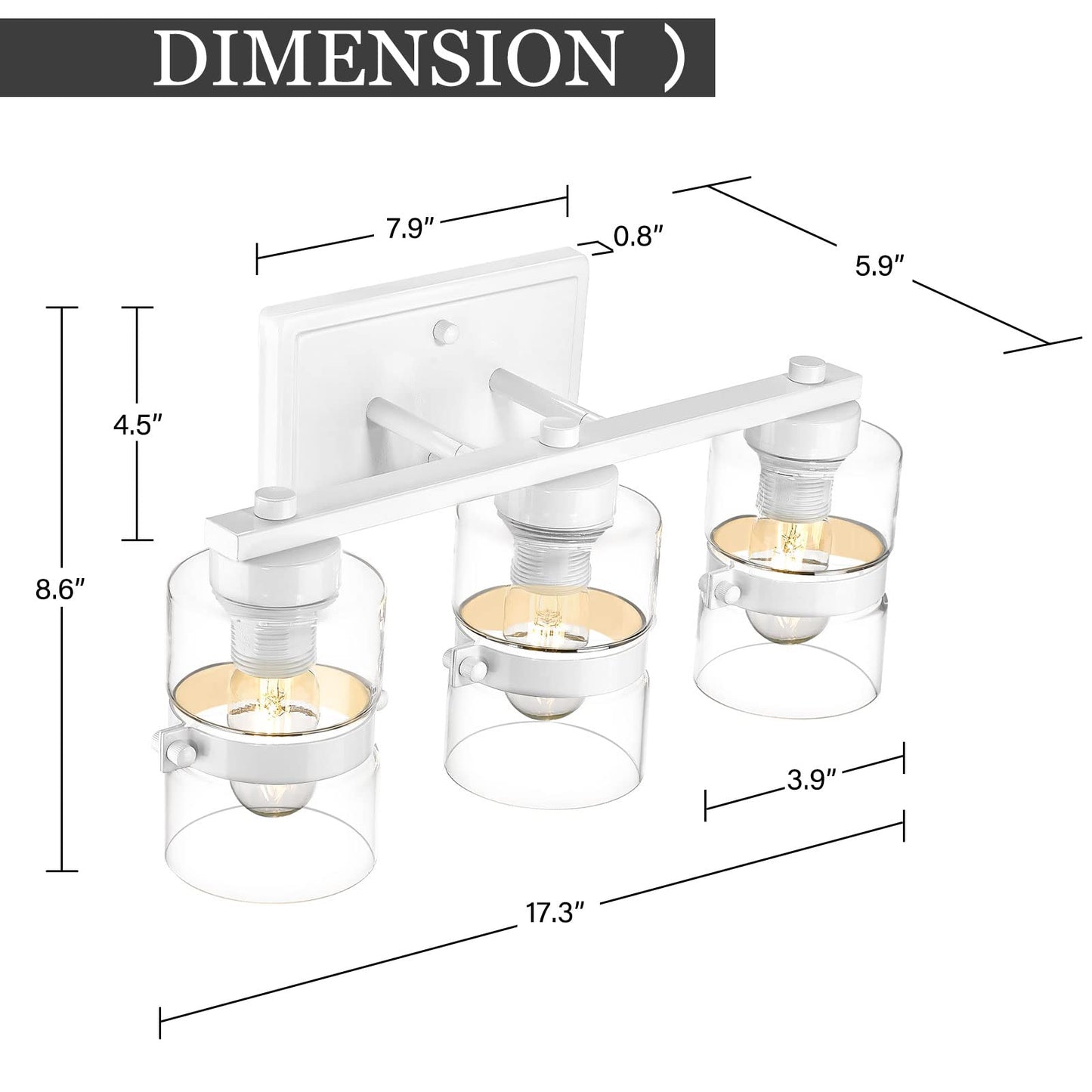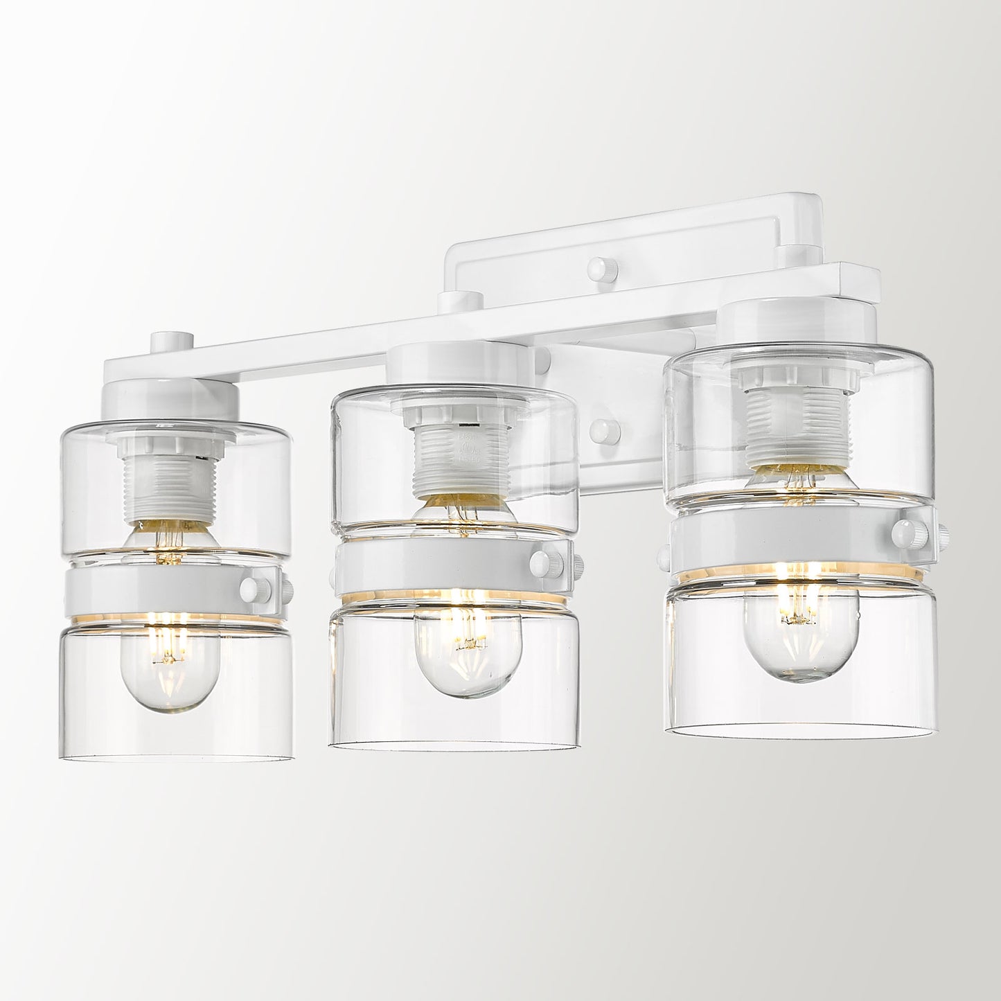 Emliviar 3-Light Modern Bathroom Light Fixtures with Clear Glass, Industrial Vanity Light Fixtures Over Mirror, White Finish, JE258B-3W WH