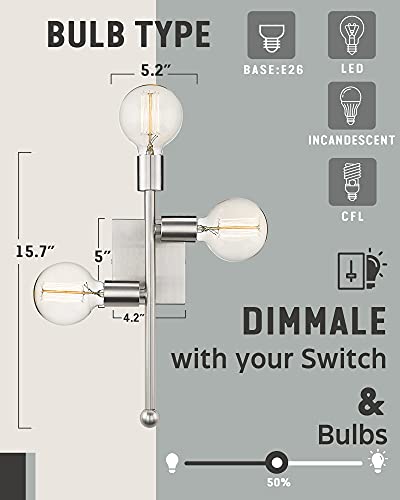 - Bulb Requirements. Support any E26 base bulbs ( Max 60W/each, bulbs are not included). This 3-light wall sconce is also designed to be dimmable when used with a dimmable bulb and compatible dimmer switch.