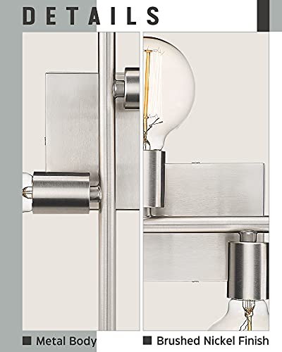 - Modern Design. This bathroom wall light is equipped with brushed nickel finish, unique design allows your bulb to emit bright lighting to create a beautiful lighting atmosphere inside your room.