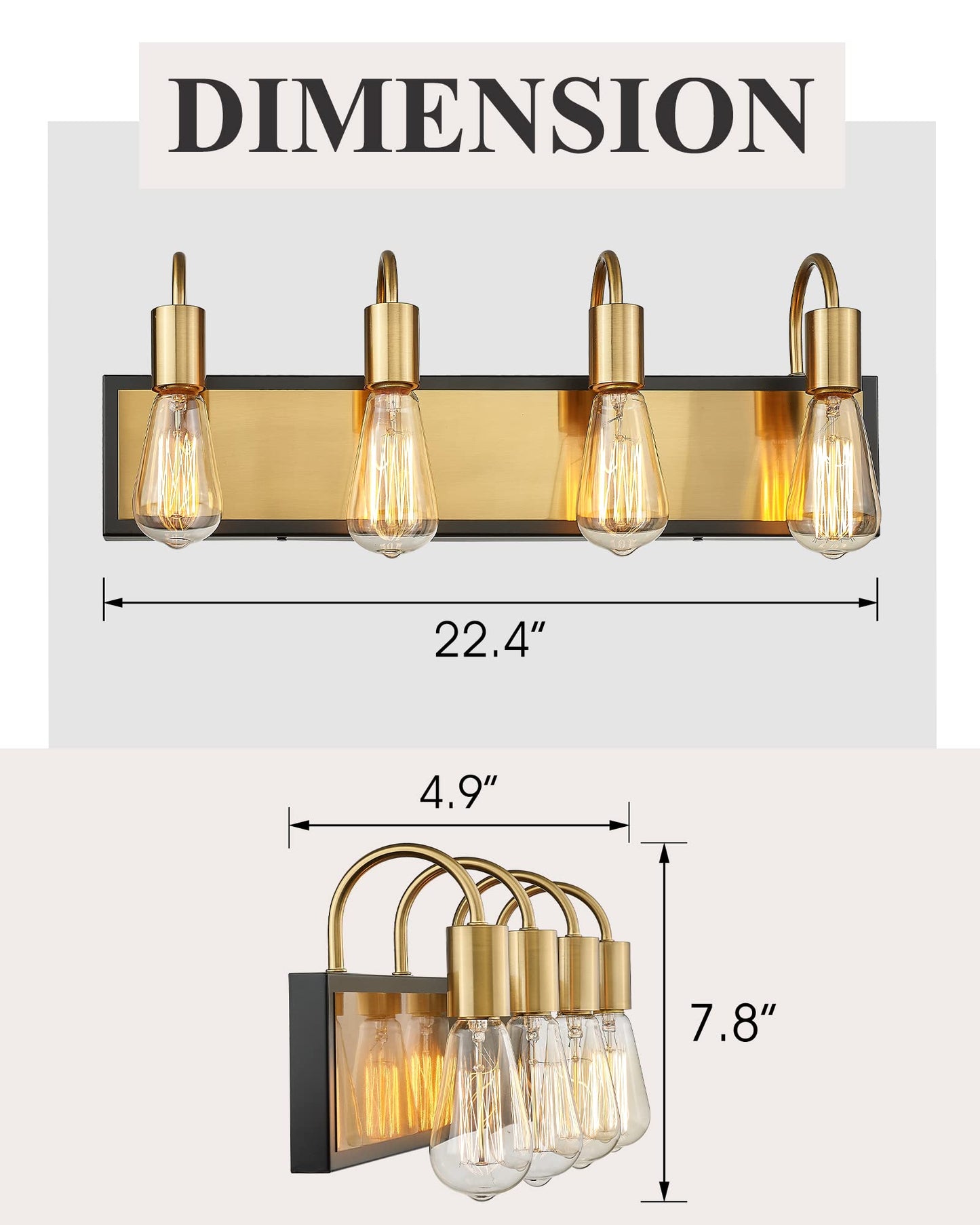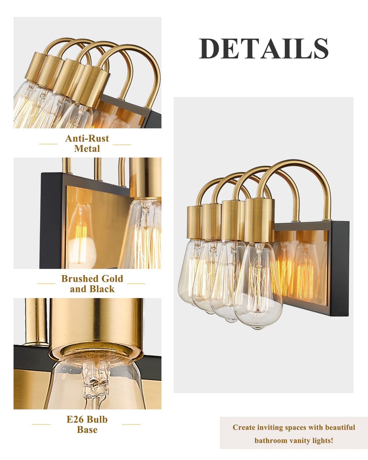 HWH 4-Light Vanity Light Fixture, Modern Bathroom Vanity Light, Indoor Wall Lamp for Bedroom, Living Room, Brushed Gold and Black Finish, 5HLT69B-4W BG