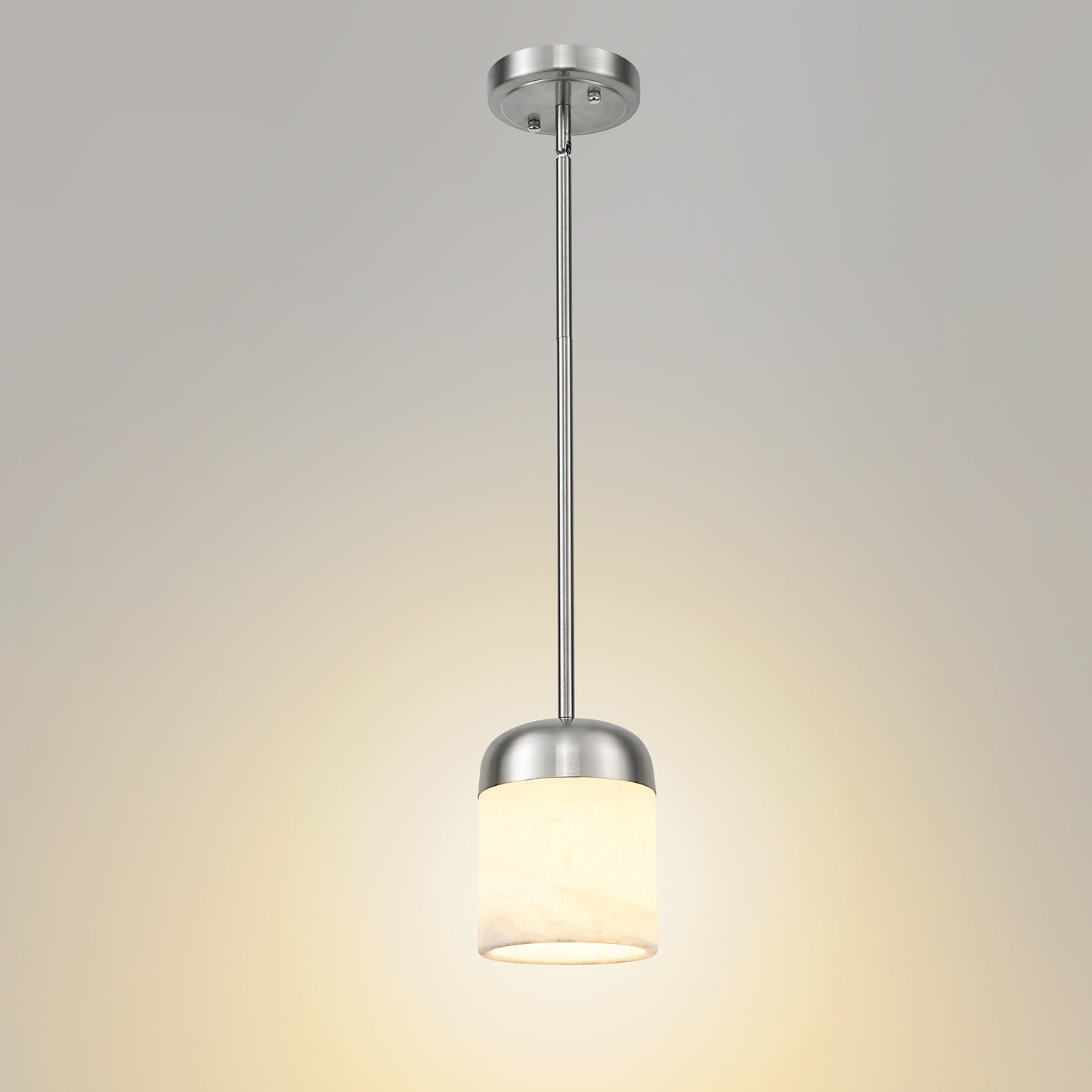 Emliviar 6.8 Inch Spainish Marble Alabaster Hanging Light, Mid-century Style Brushed Nickel Finish Pendant Light Fixtures, Natural Alabaster LED Long Light Tube for Bedroom, Living Room, Balcony, Hallway - GE300MIL BN