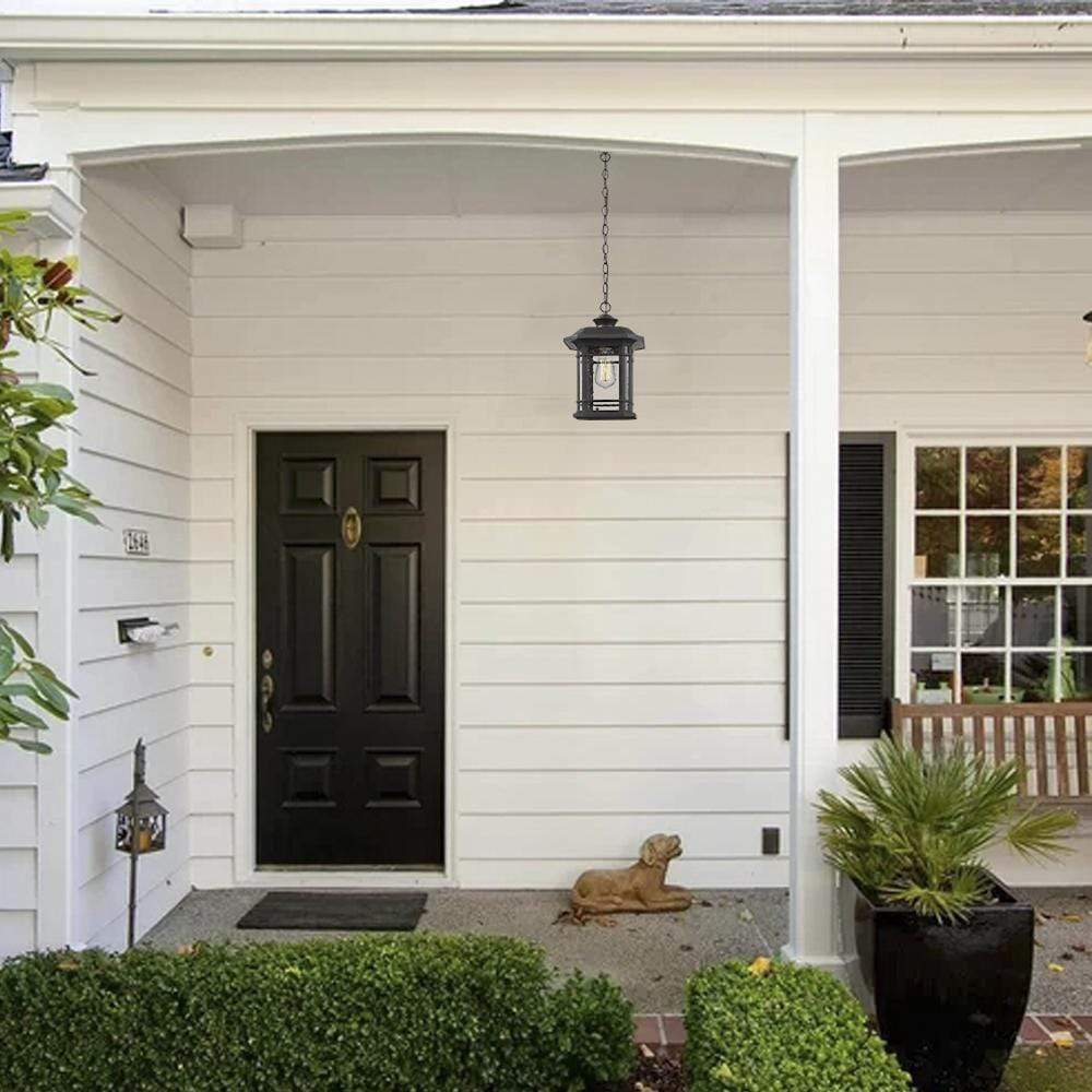 - Weather resistant and suitable for wet locations, this outdoor pendant lighting features sturdy aluminum construction and seeded glass in black finish