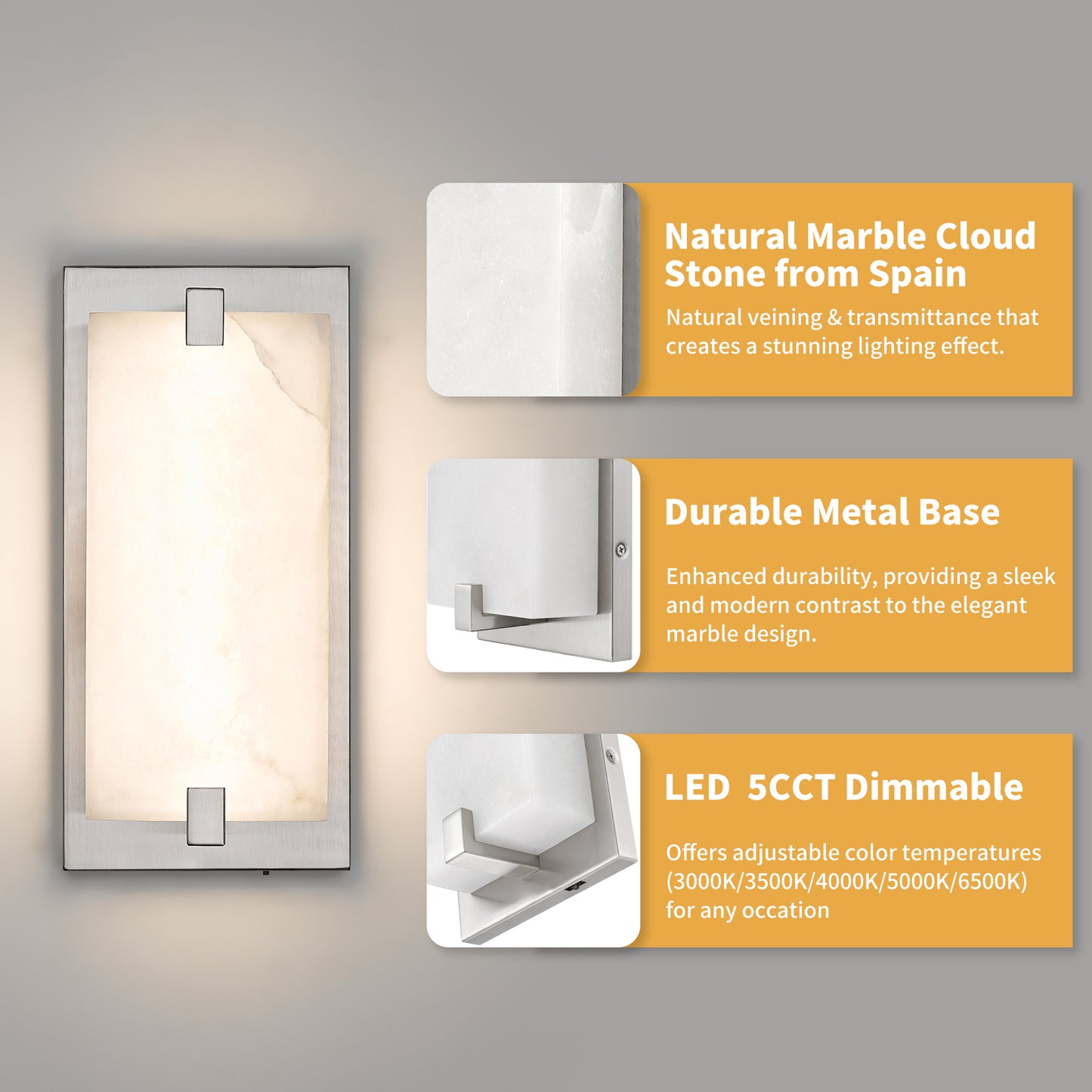- 【Spainish Natural Marble】Add a touch of luxury to your home with our exquisite Spanish Marble Cloud Stone LED Wall Sconce. This elegant wall light is crafted from Spanish Black Veined Natural Marble Cloud Stone, known for its unique, natural veining and transmittance that creates a stunning lighting effect. Each stone is one-of-a-kind, ensuring that no two lights are the same, making your home lighting truly unique.