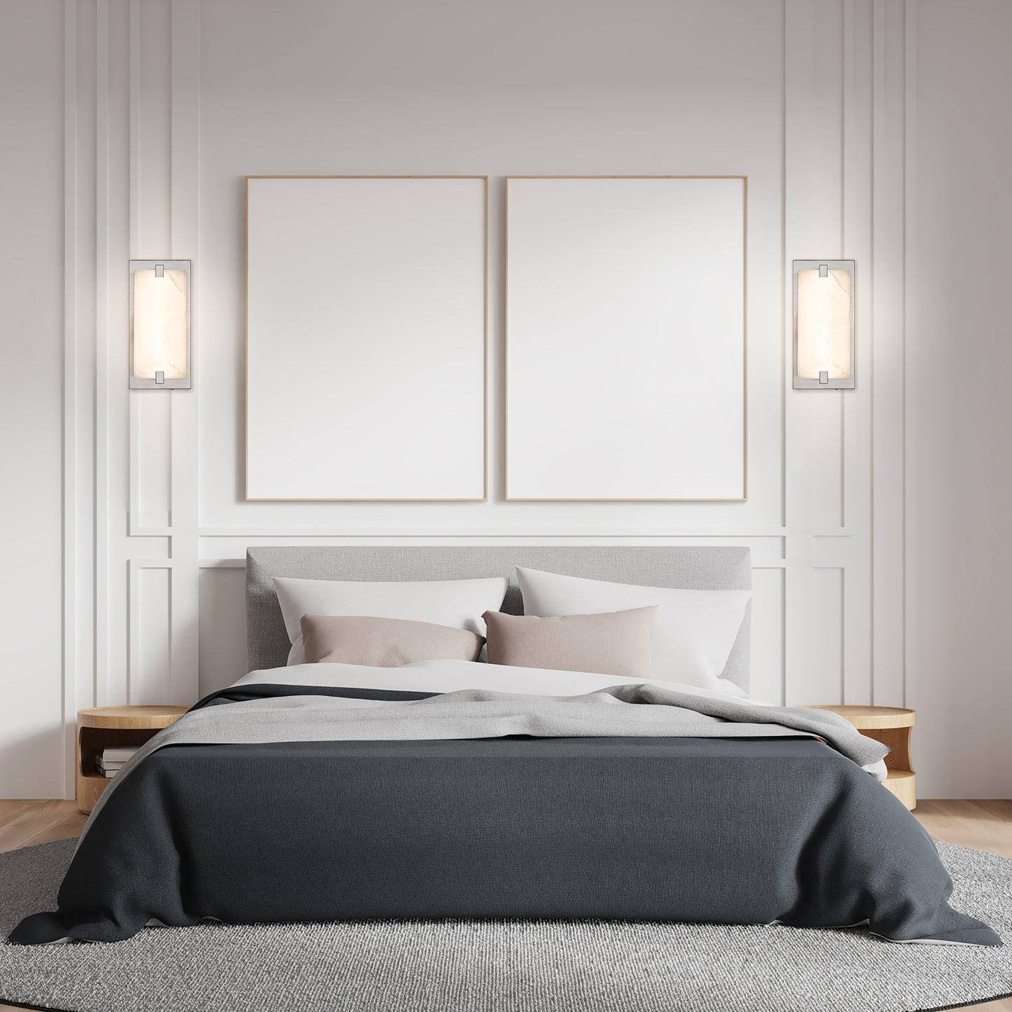 Emliviar 12.6 Inch 2-Pack Spanish Marble Cloud Stone LED Wall Sconce, Dimmable 5CCT Adjustable Brushed Nickel Finish Vanity Light, Natural Alabaster Wall Lamp for Bathroom, Bedroom, Living Room, Front Door - THE297B-2PK LED BN