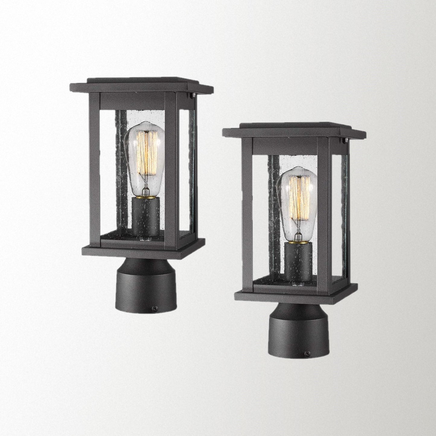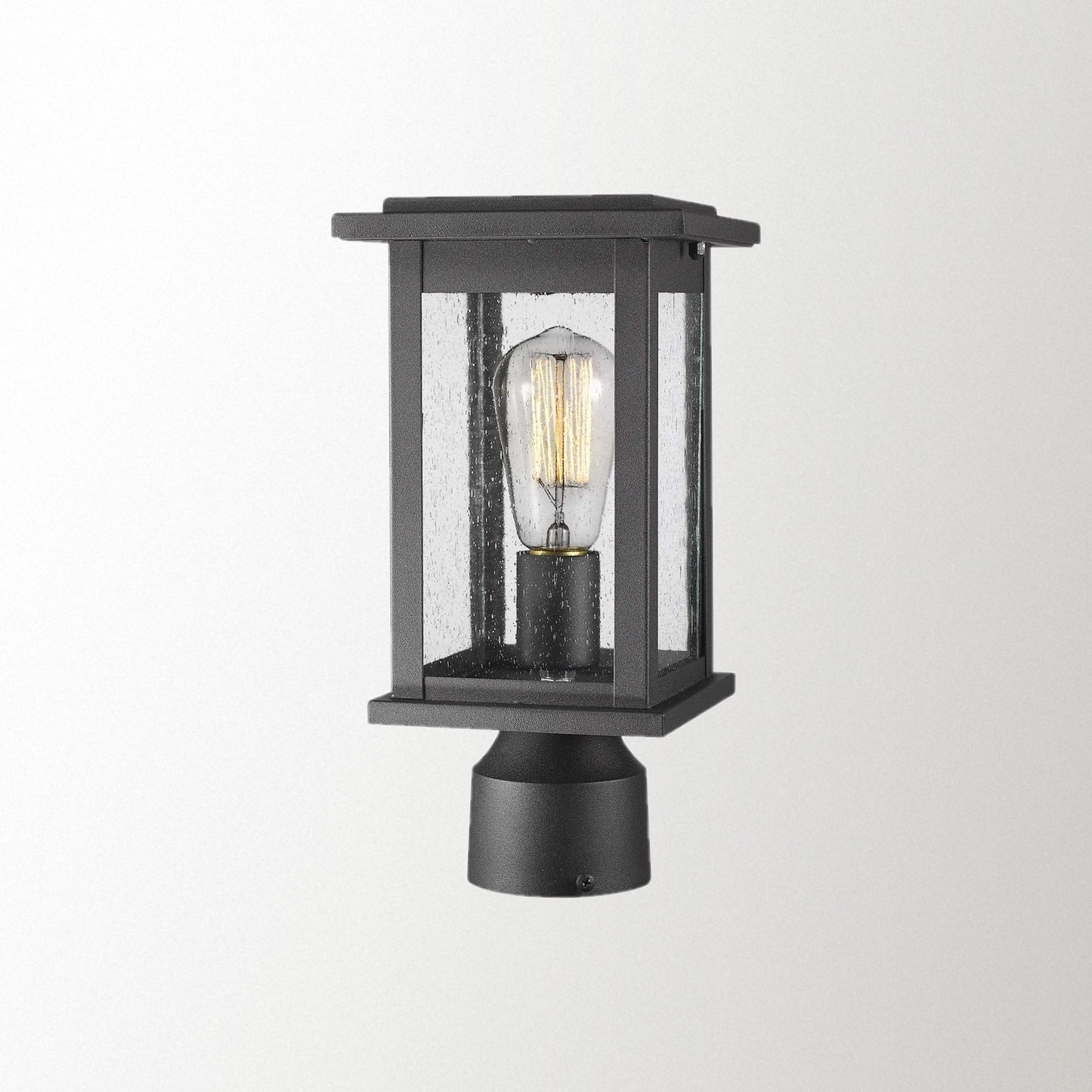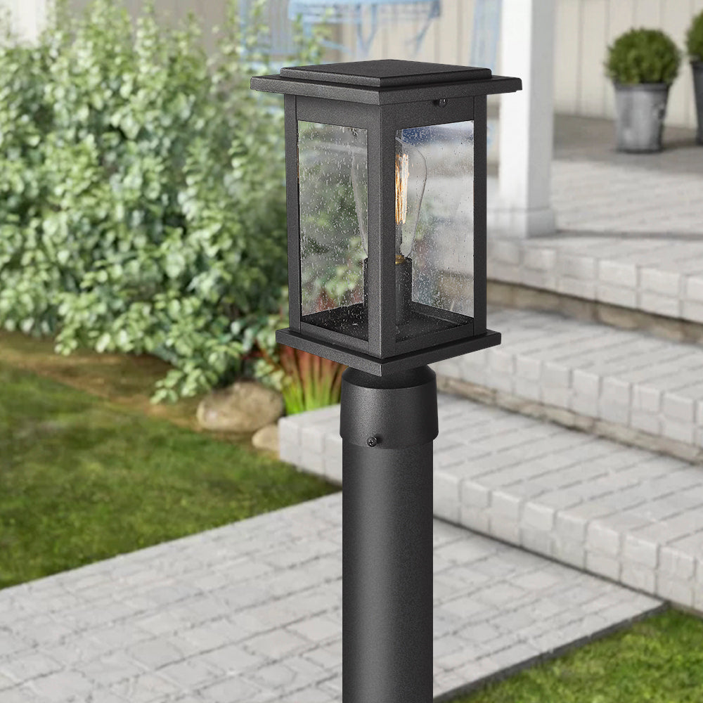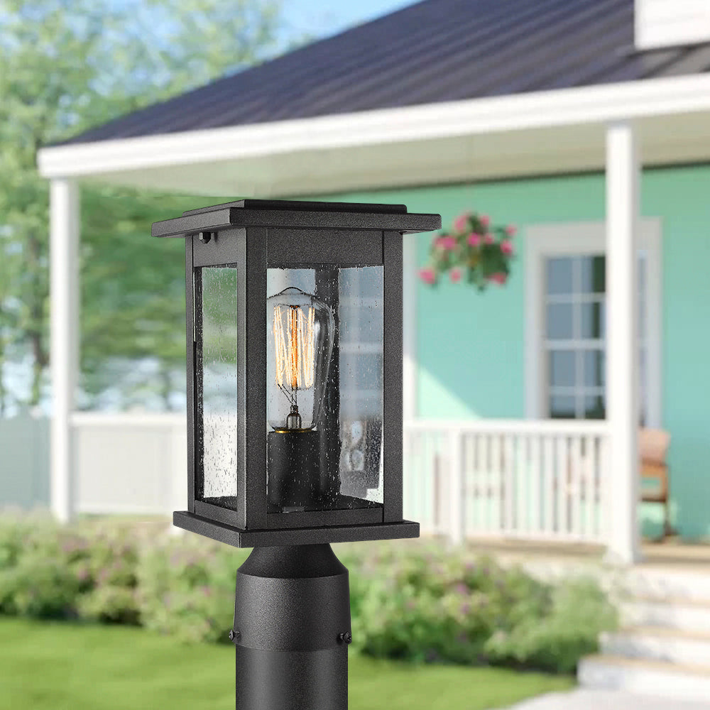 - Weather resistant and rust resistant, this exterior post light fixture features sturdy metal construction and seeded glass shade, suitable for wet locations