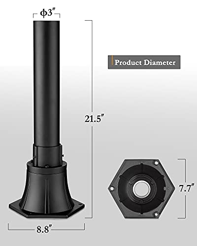 - 【DIMENSION 】21.5" high. Base footprint is 8.8" wide. Diameter mounting surface at top is 3" wide.